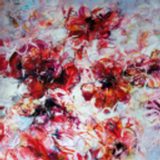 My recent goal has been to create paintings where there is only a hint of flowers, pushing abstraction to the limit but using my imagination…![When it's springtime 1]()