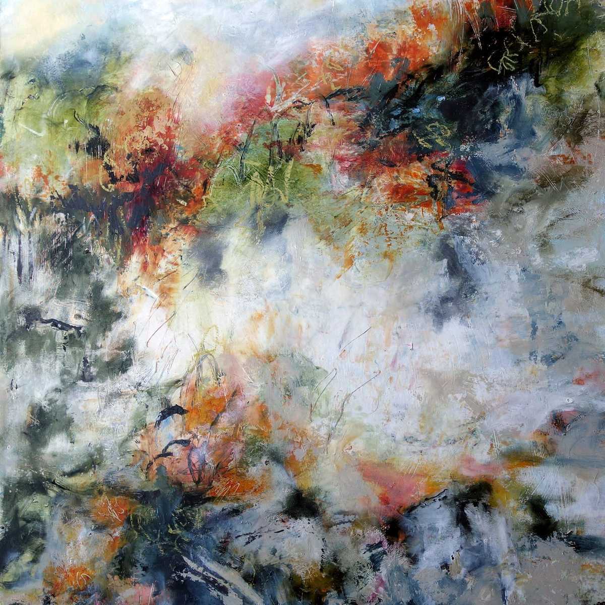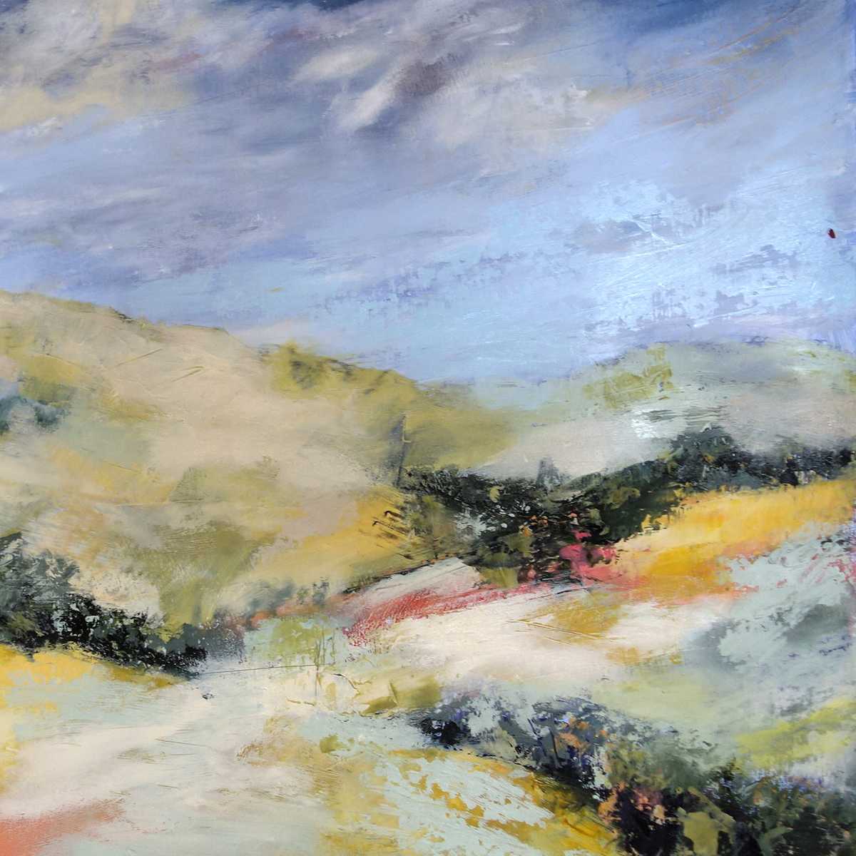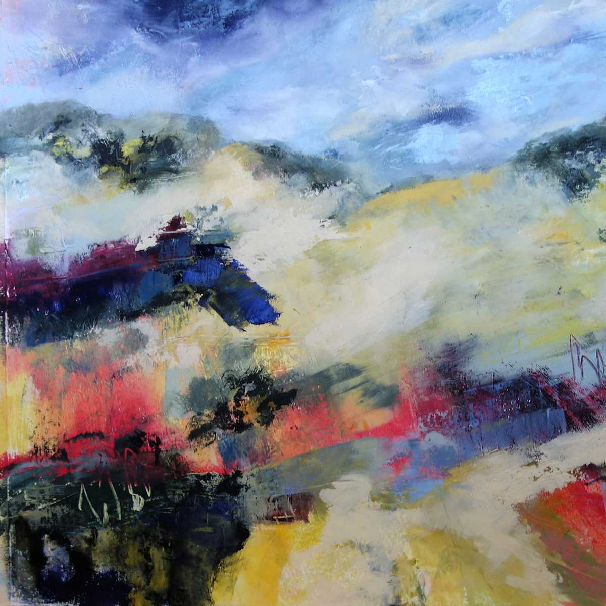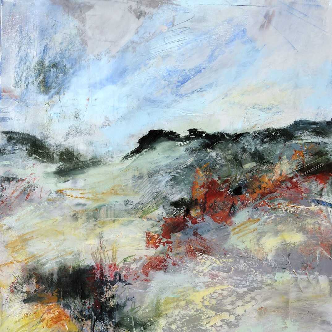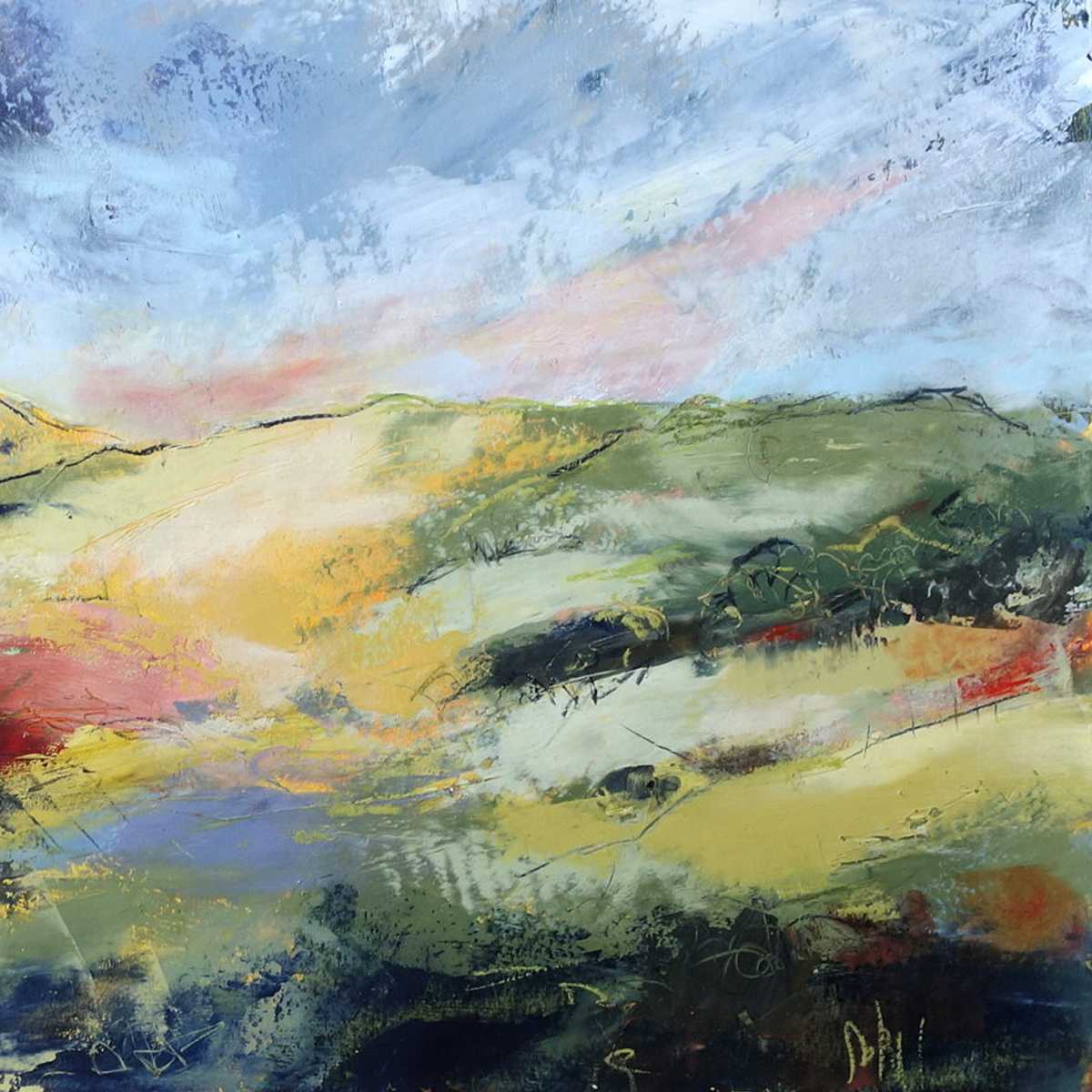 Inspired by the perceived need to use off cut cartridge paper building up from my 60 cm square work. For the past year or two most of my work has been in a square formats from 30cm up to 80cm. Different approaches are needed when creating in other formats. The works here developed firstly as pure structural abstracts then intuitively formed into two rural landscapes. Two others became floral still life. I enjoyed doing them and followed up with another four which all resolved into landscapes.