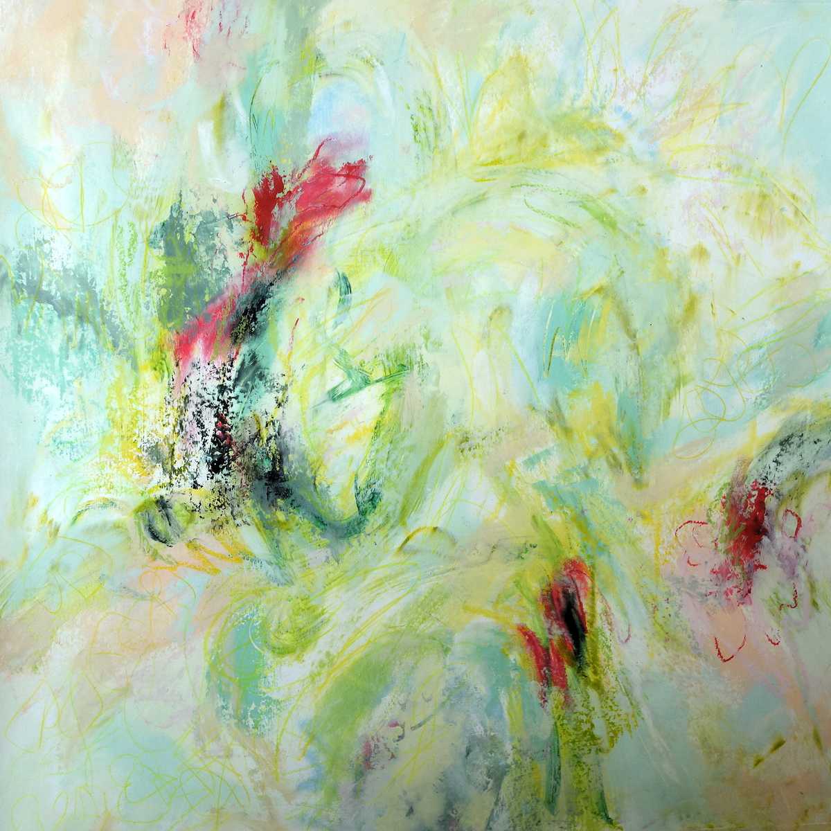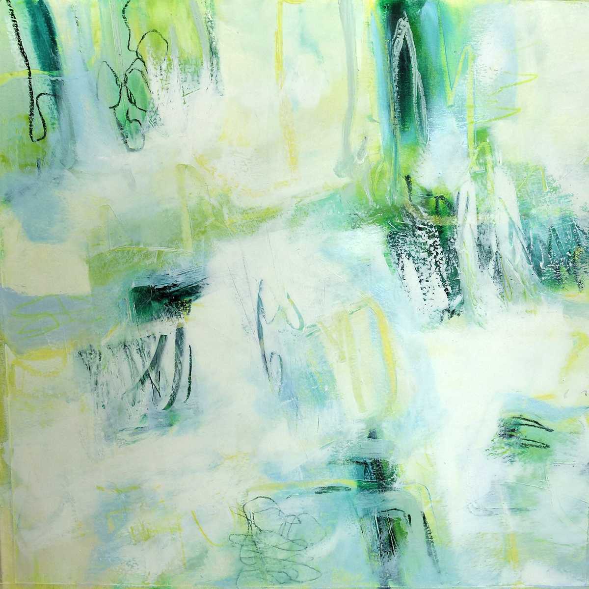 I have long been fascinated with purely abstract art and have experimented with a range of shapes; geometric and organic but mostly with a lot of tonal contrast. In this set of work I am working with a limited palette focussed on greens in particular lime green. I am trying to keep the colours in a high key; fresh, bright and invigorating but calming.