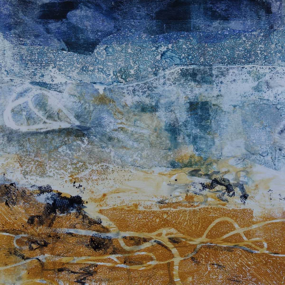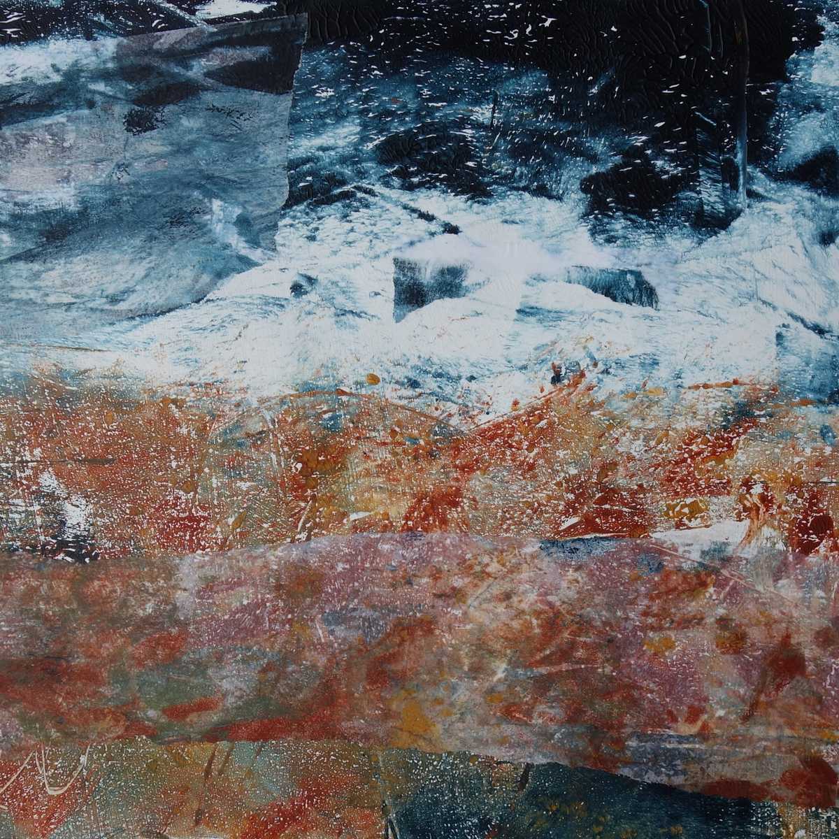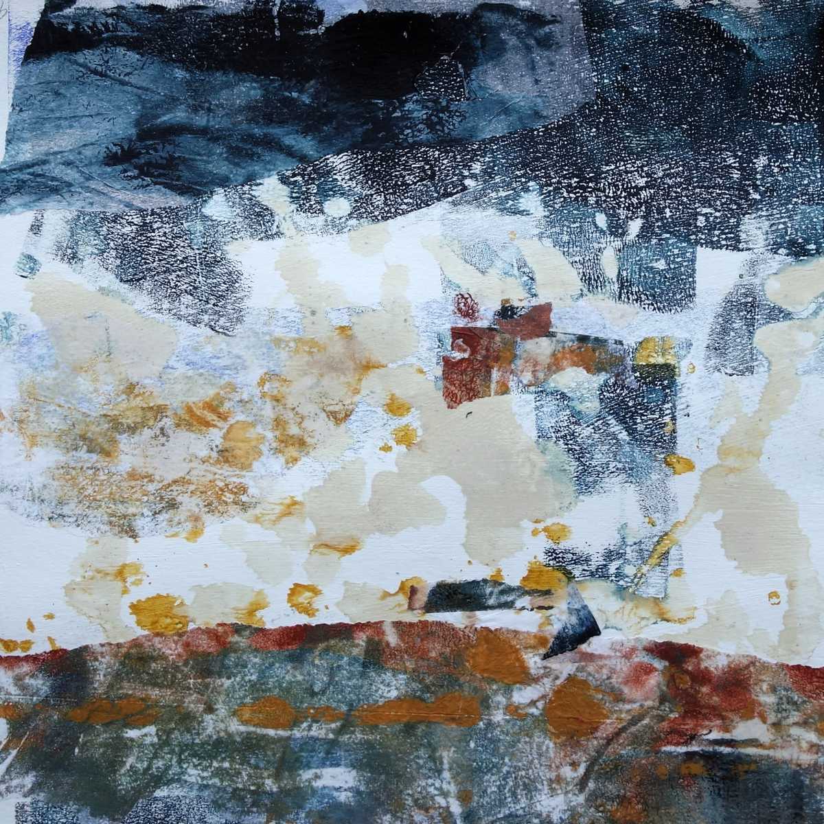 Mono prints and collage feature in some of my work. I have a few pieces that are mainly print and/or collage. I like to transfer monoprints and also use a gel plate to create collage papers on fine tissue. These are integrated into the painting to create complexity and exciting textures.